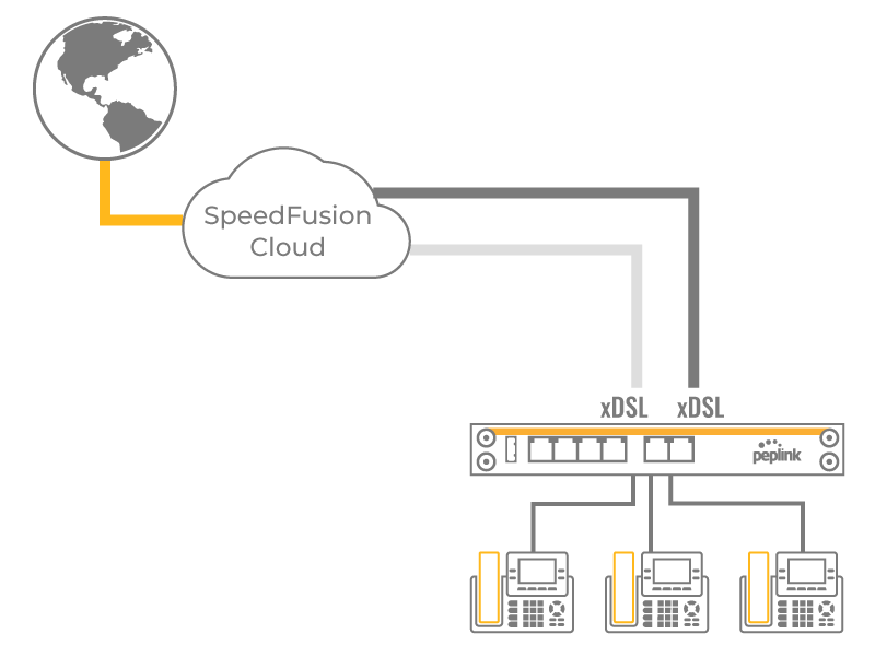 Securely connect to HQ using any connection, no configuration needed. Hotel Wi-Fi, cellular link, and landlines: connect with them all. Use WAN Smoothing to improve VoIP quality even when using a single WAN connection.