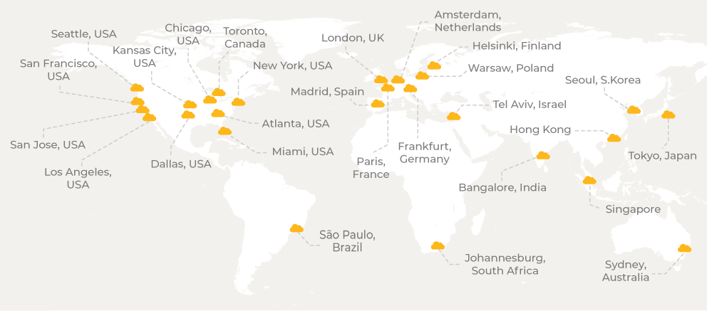 We've hosted SFC nodes in public clouds all over the world. Your device builds a SpeedFusion connection with one of our nodes for unbreakable connectivity.
