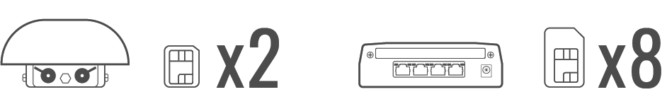 Simply connect an Ethernet cable between the SIM injector^ and the HD1 Dome Pro to manage up to 10 physical SIMs.